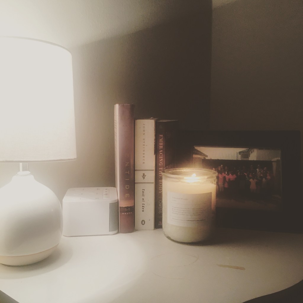 My bedroom smells of sheets fresh from the dryer and my favorite candle. Stacked on the floor by my bed is a few books, my journal, and my Bible. I may not touch any of them tonight but I find comfort in knowing they are there if I want them.