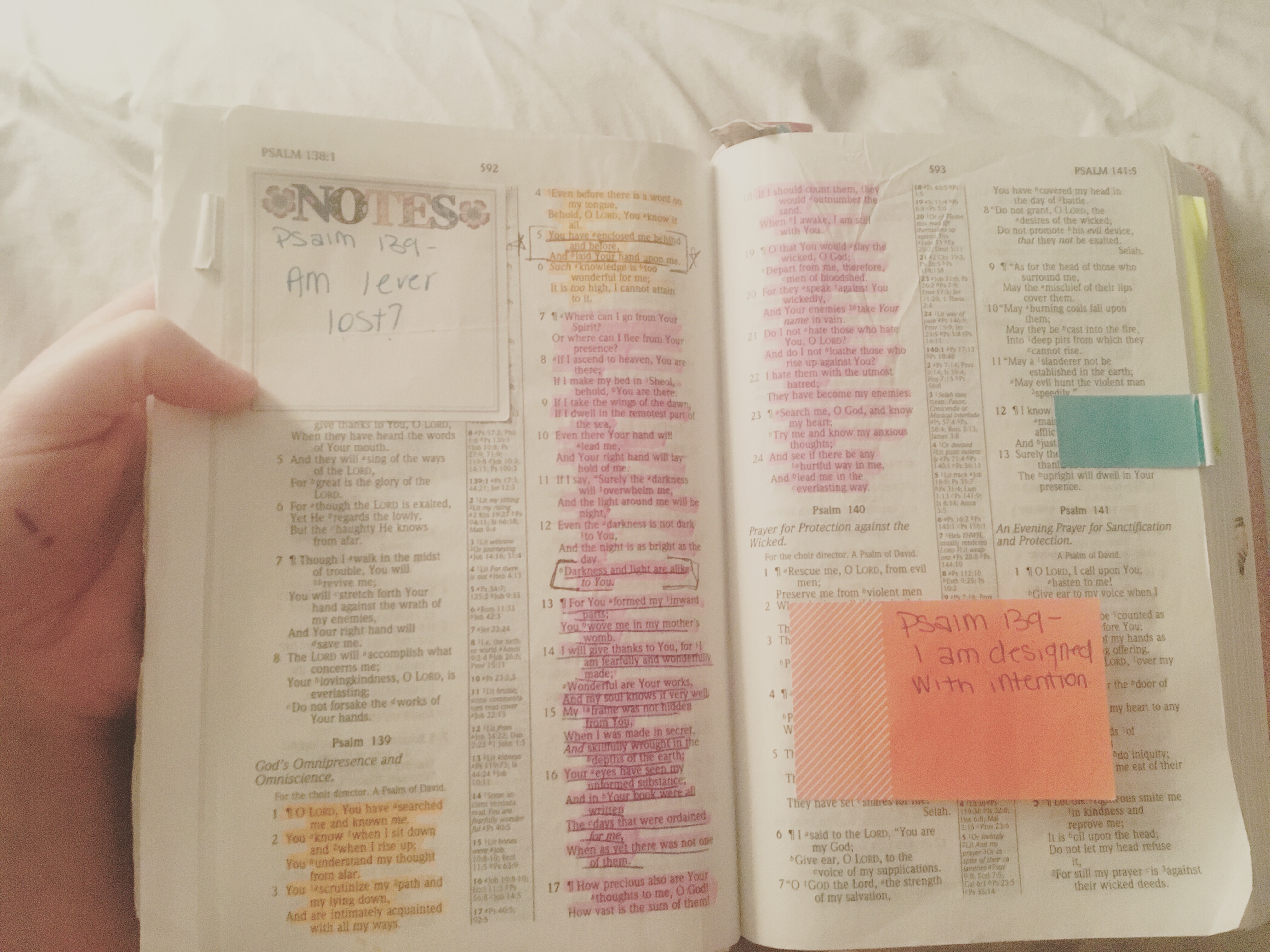I revisit Psalm 139 where highlights and notes, remnants of my past musings, await me.