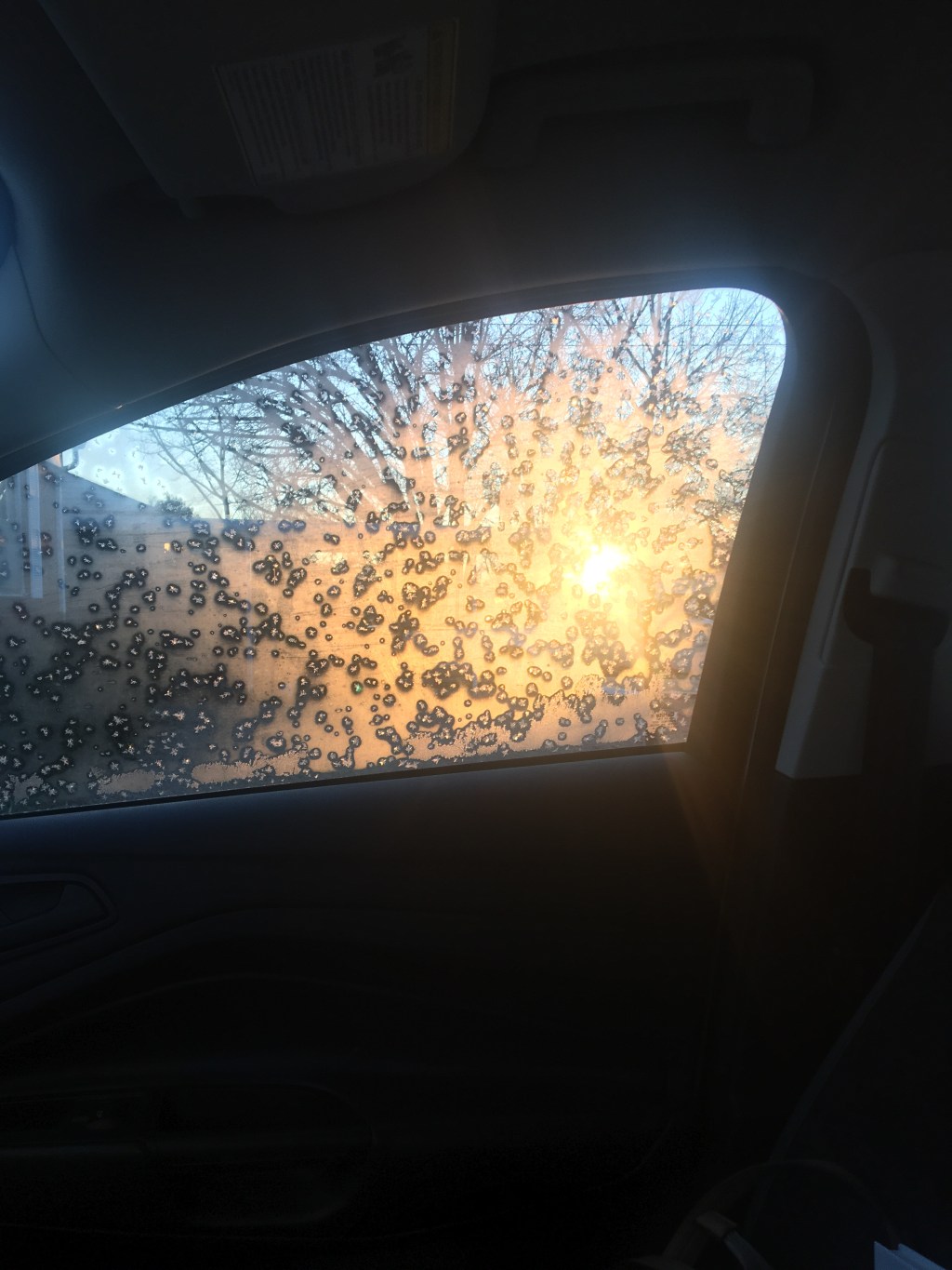 The day began with the sun pouring in in kaleidoscopes through a frosted car window.